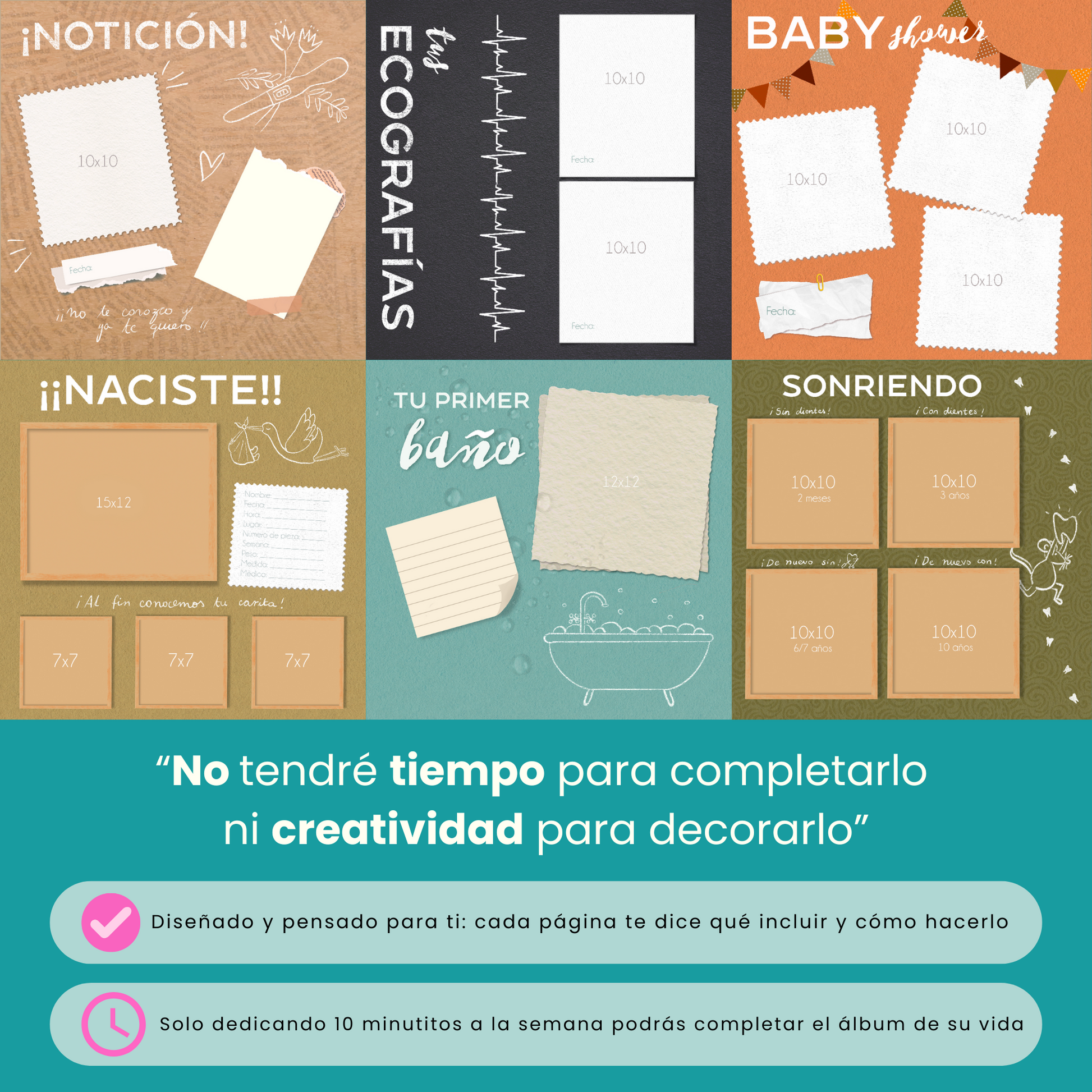 ⏱️Con solo 10 minutos a la semana podrás completarlo. Tendrás un álbum que contará la historia de su vida de manera bonita, organizada y significativa.