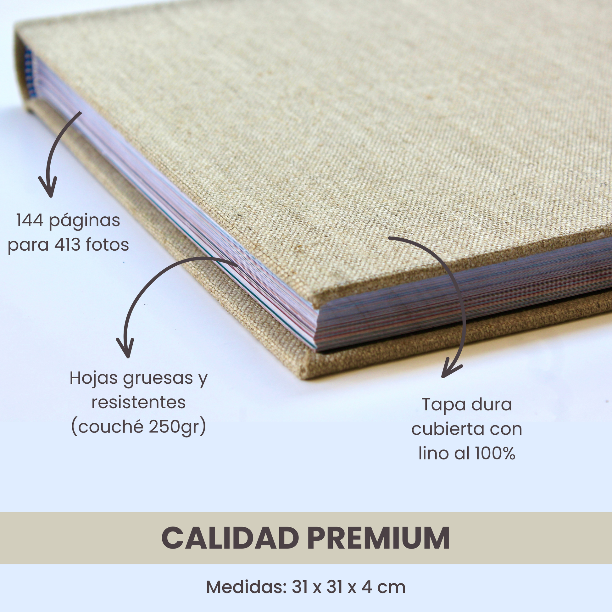 ✅Tapa dura de cartón piedra cubierta con tela de lino 100%.