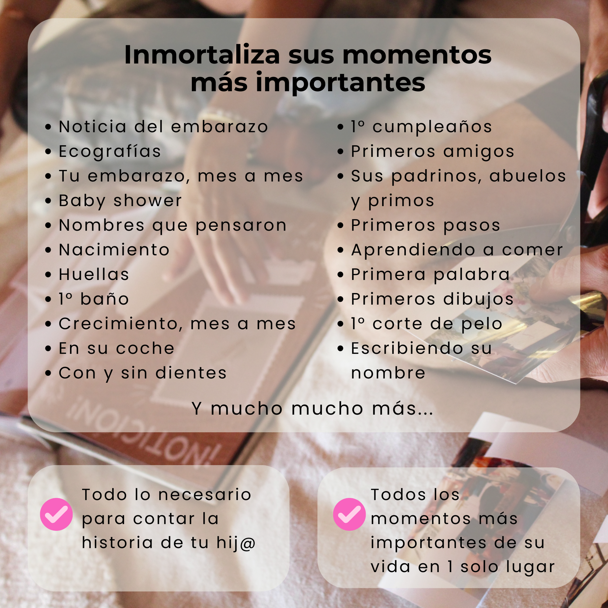 ⏱️Con solo 10 minutos a la semana podrás completarlo. Tendrás un álbum que contará la historia de su vida de manera bonita, organizada y significativa.